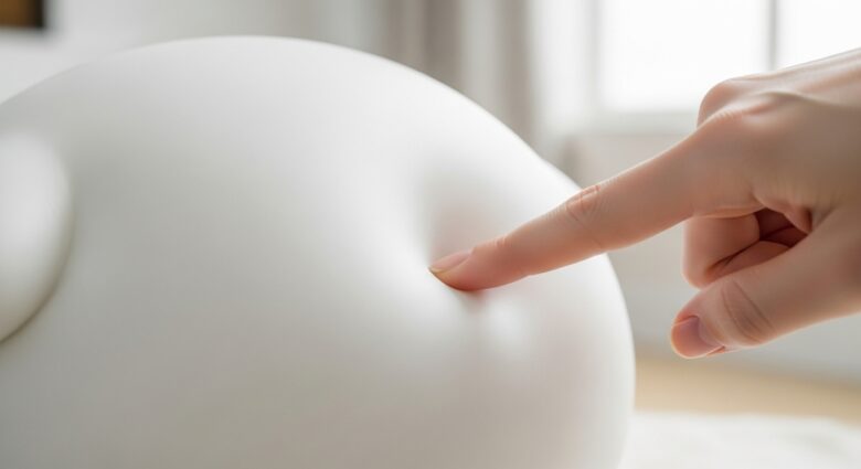 指で押した時に、すぐに戻ってこず、ゆっくりと沈み込むような感触。