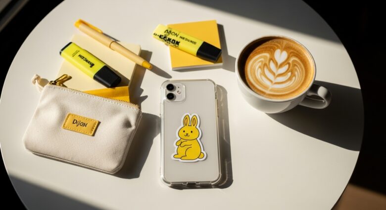 パステルイエローのケースで「うさぎカラー」に統一してもいいですし、